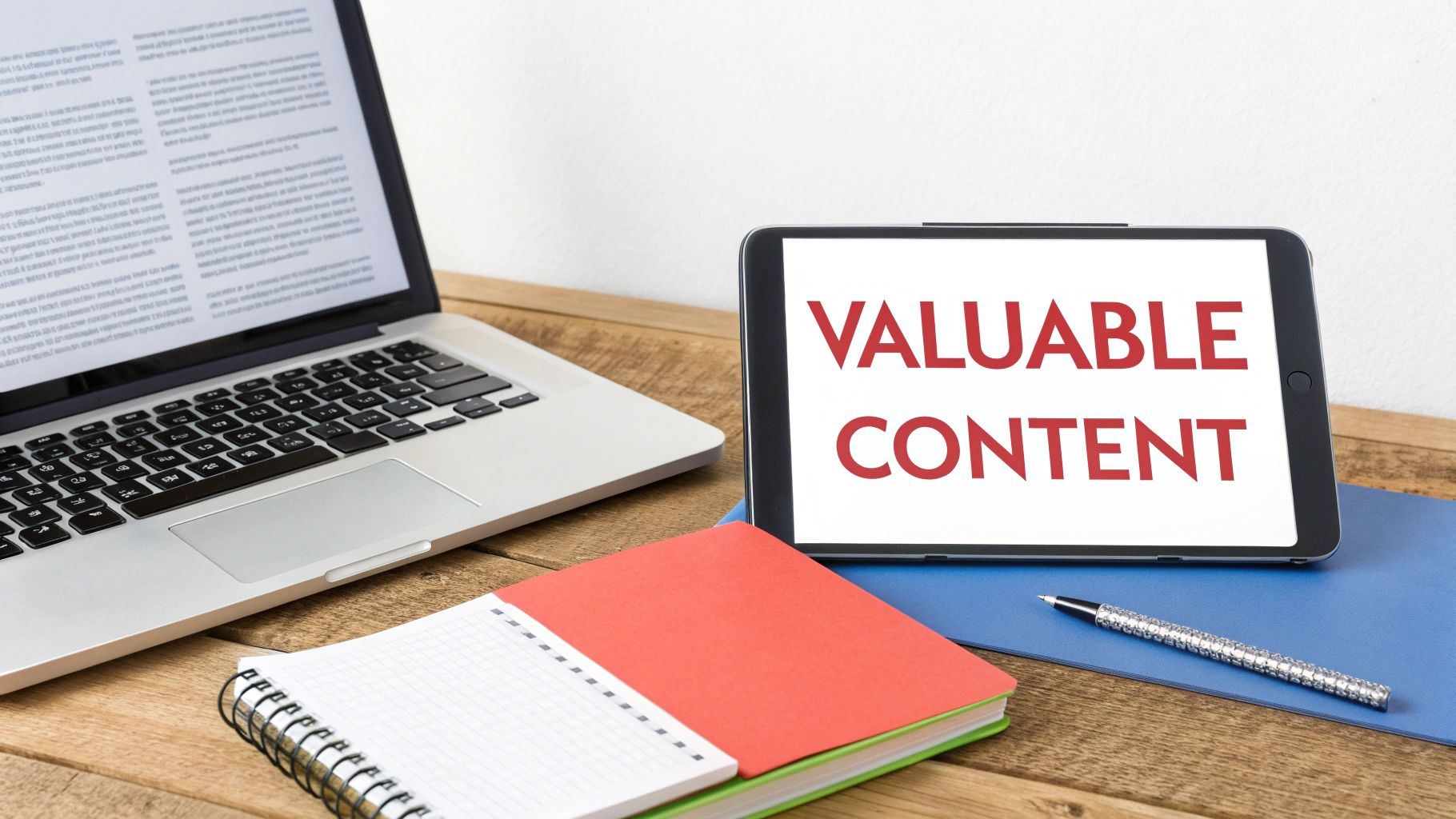 This strategy works because it positions your startup as a helpful expert in your field. Think of HubSpot, which built its empire on an extensive library of educational blogs and resources, or Buffer, which became a go-to source for social media advice through its transparent and insightful blog. They focused on solving their audience's problems first, building a loyal following that eventually converted into customers.