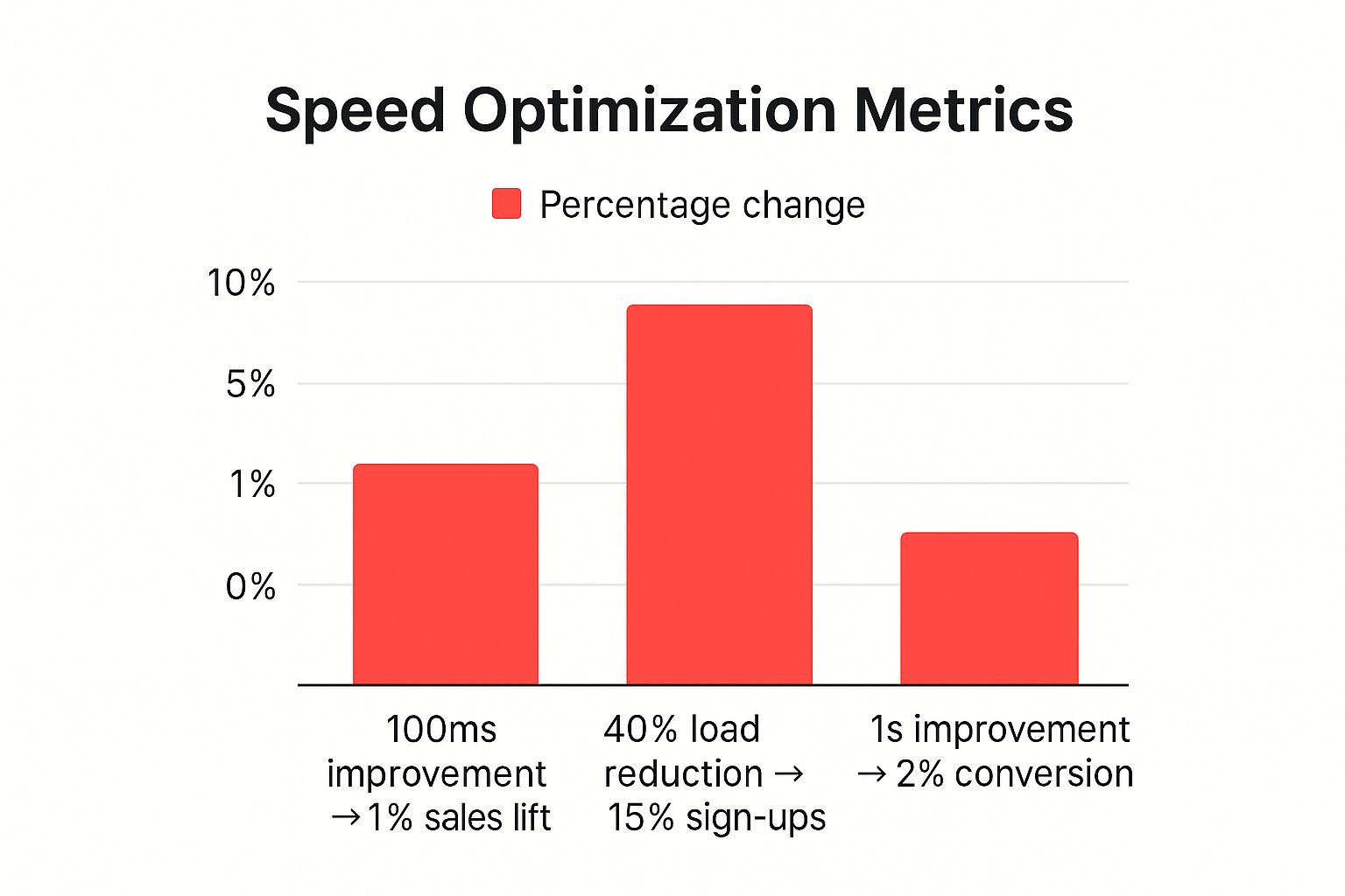 The bar chart below illustrates the tangible business impact of speed improvements, drawing from real-world case studies of major online brands.