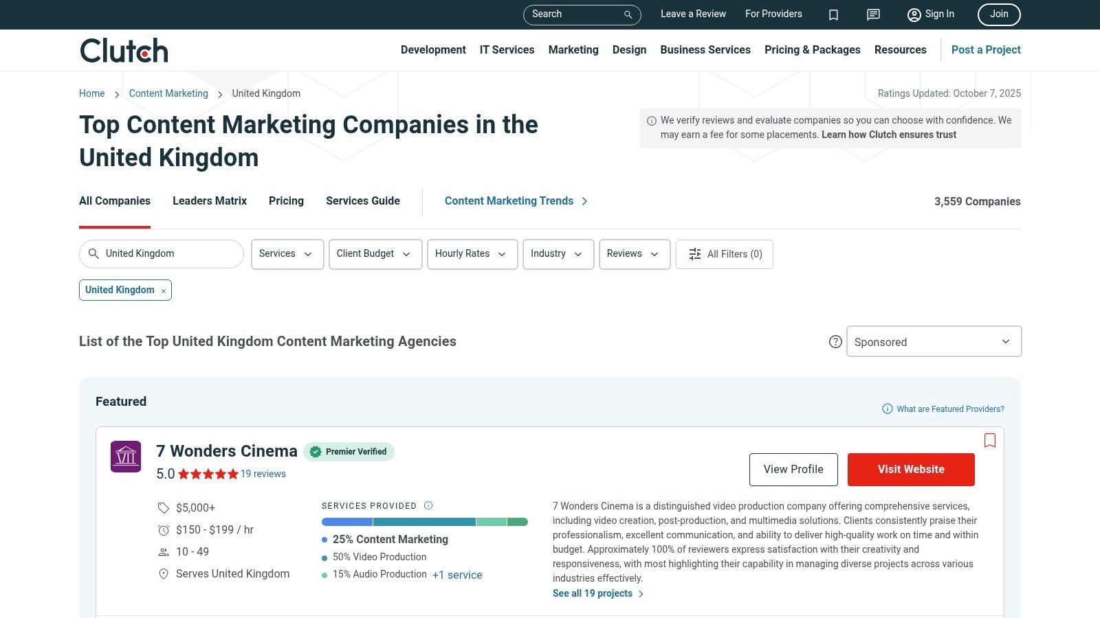 The platform is meticulously organised to facilitate the comparison and vetting of potential agency partners. Its UK-specific directories and granular filters empower users to create a targeted shortlist of the most relevant content creation companies.