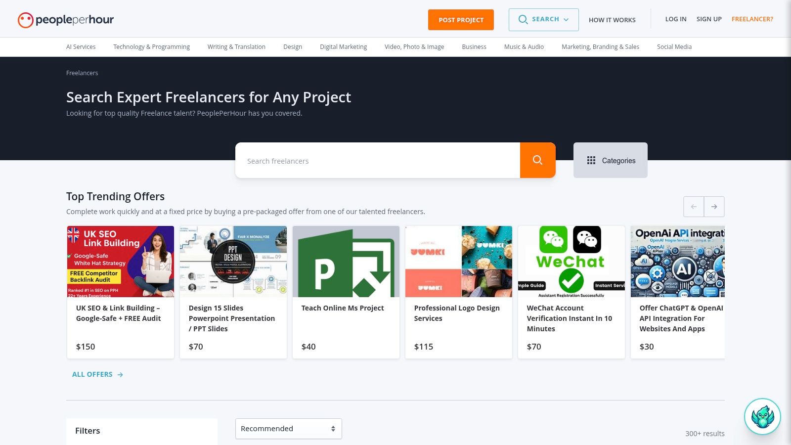 PeoplePerHour operates on a flexible model with no upfront subscription fees to post a job or browse for talent. Clients pay a small service fee on each transaction. The ability to buy fixed-price Offers makes budgeting predictable, while the option to post a custom project allows for more complex, bespoke content creation needs.