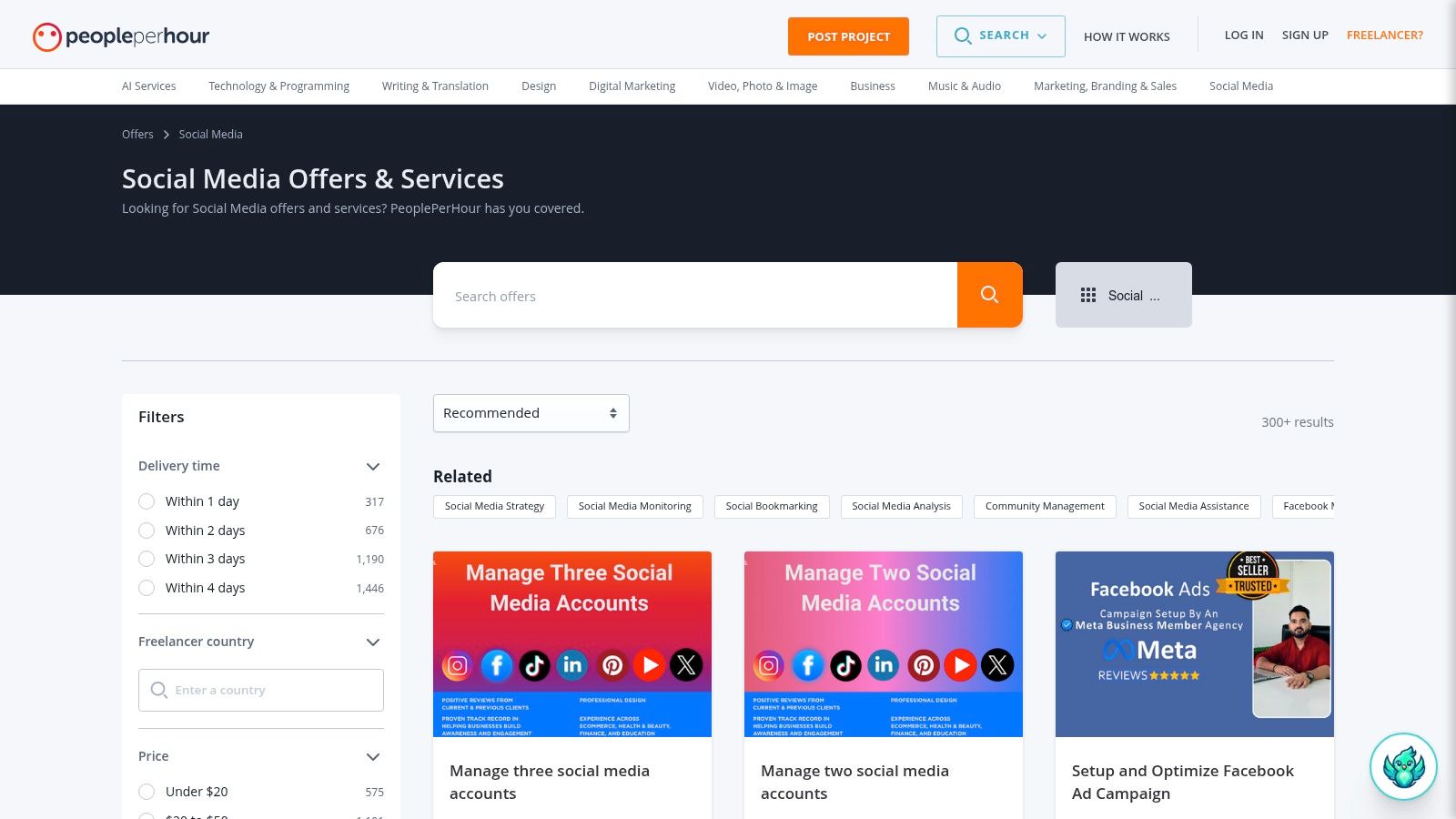 - Browse Offers: Search for fixed-price packages in sub-categories like social media strategy, community management, or channel-specific support (e.g., LinkedIn, TikTok).