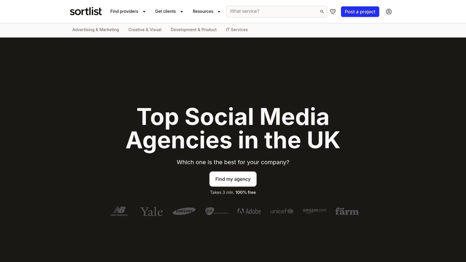 Sortlist UK operates as a matchmaking platform designed to connect businesses with the right social media marketing agency. Instead of a simple directory, it uses a guided workflow where businesses can post project briefs and receive a curated shortlist of suitable, vetted agencies. This approach is particularly effective for companies that want a more tailored and supported selection process, especially those unfamiliar with the agency landscape.
