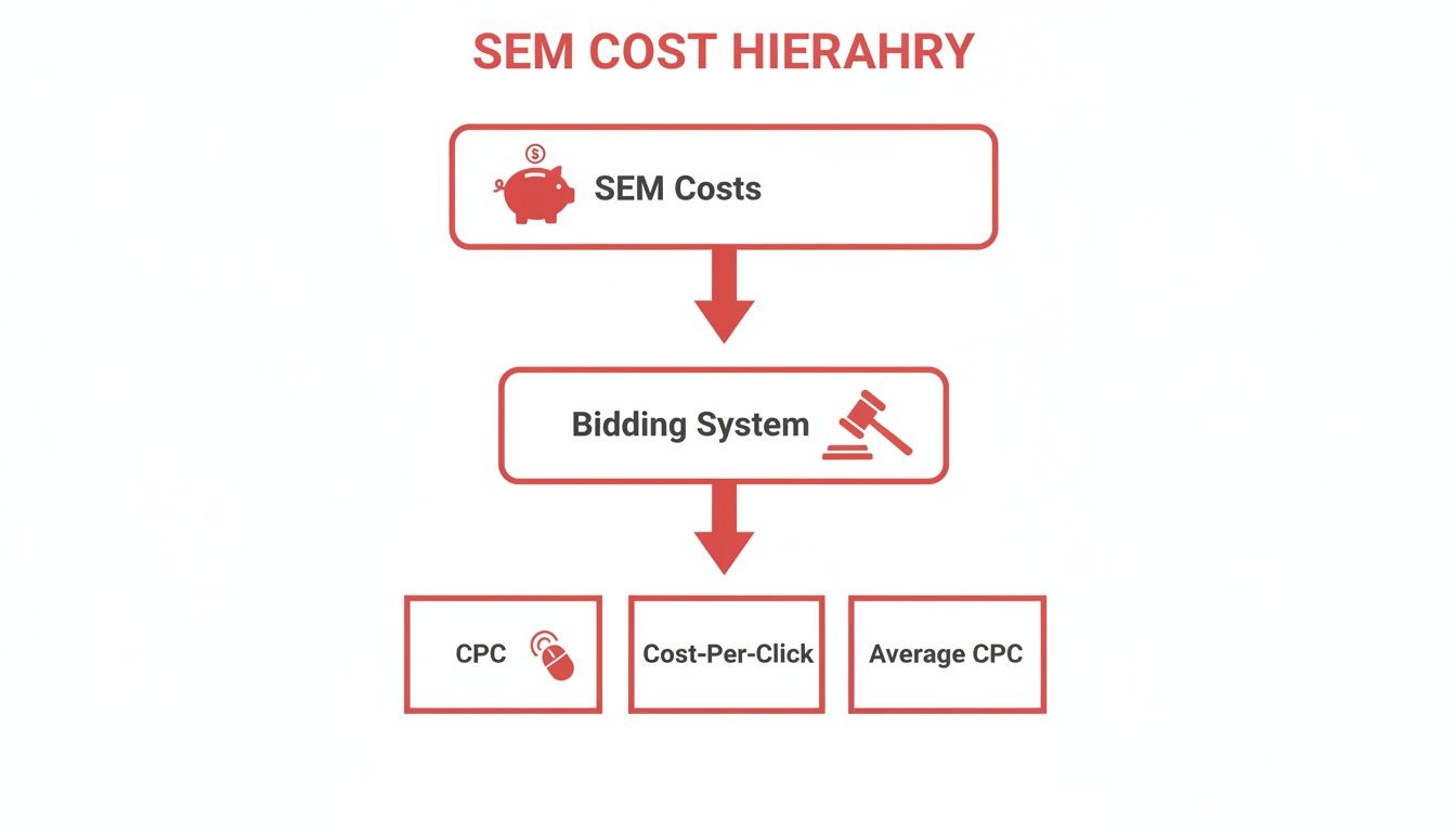 As you can see, the bidding system is the central mechanism, and it’s what ultimately dictates your Cost Per Click (CPC) and, in turn, your final Google SEM costs.