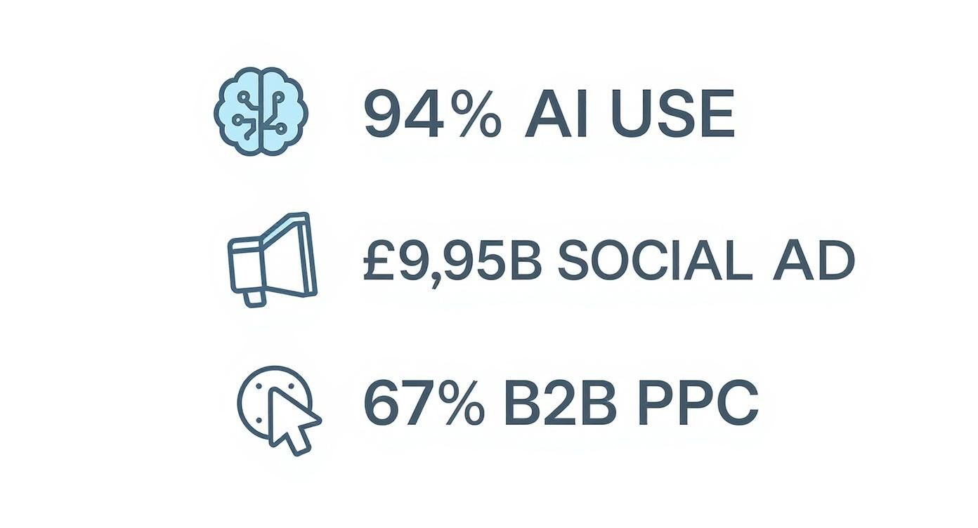 These numbers really highlight the heavy reliance on AI, the sheer scale of social media advertising and just how important PPC continues to be for generating B2B leads.