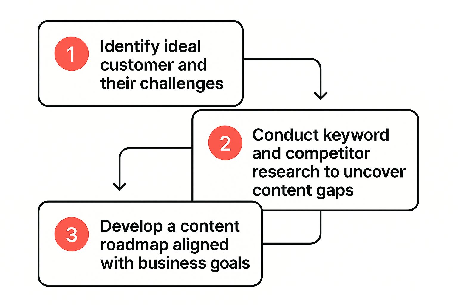 As you can see, the journey begins with your ideal customer. From there, it flows through smart research and solidifies into a roadmap that ties your content directly to your startup's biggest goals.