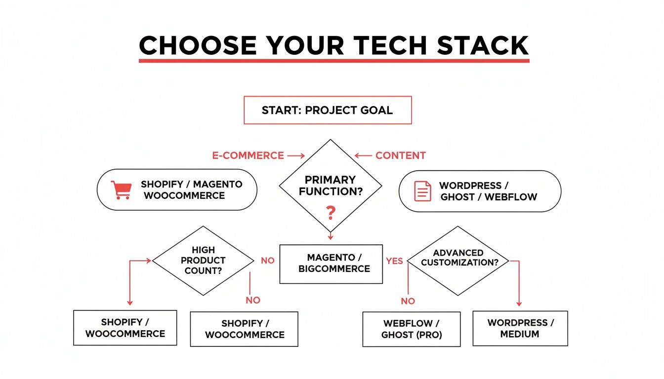 This visual guide helps simplify the initial tech decisions based on your primary business goal, whether it’s e-commerce or content delivery.