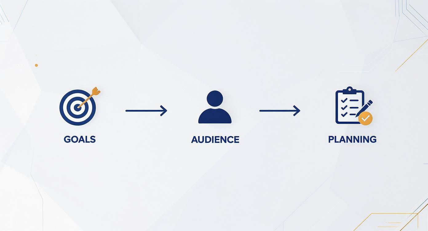 Forget about creative brainstorming for a minute—this part is pure strategic planning. Without this groundwork, even the most brilliant content can fall flat. Why? Because it was not aimed at the right people or designed to hit a specific business goal.