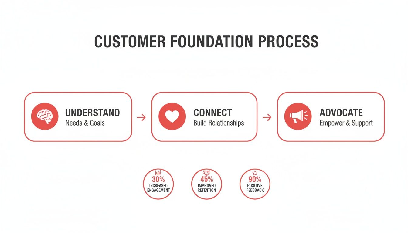 As the diagram shows, that genuine connection is the bridge between simply knowing who your customer is and earning their loyalty. It’s the absolute heart of any solid engagement strategy.