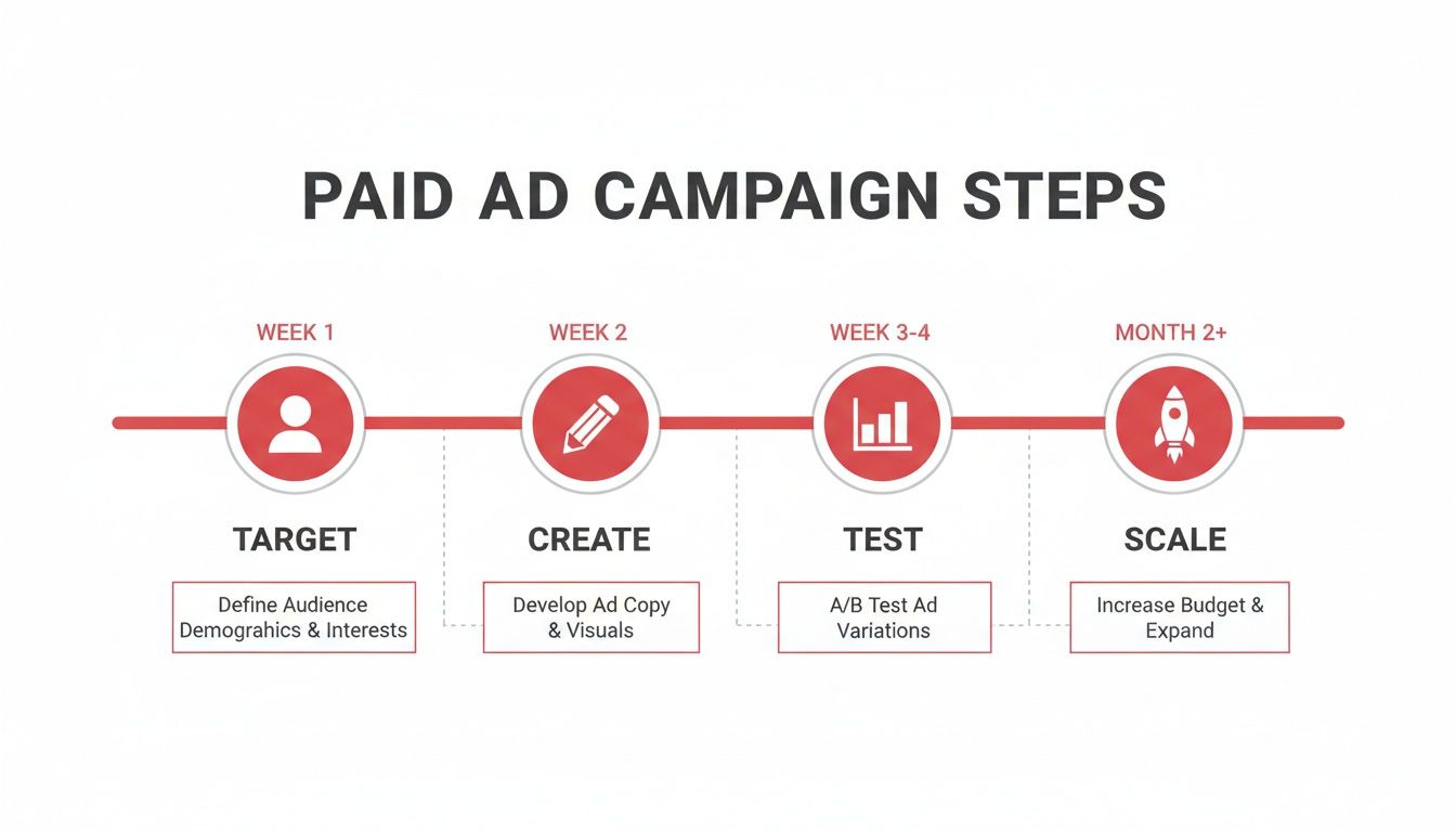 For your paid ads, you need a simple, repeatable process to refine what you're doing. It’s all about moving from initial setup to profitable scaling in a structured way.