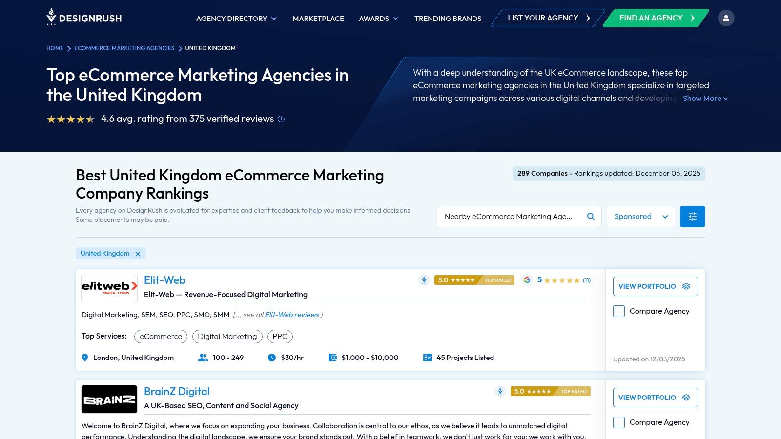 4. DesignRush – Top Ecommerce Marketing Agencies in the UK