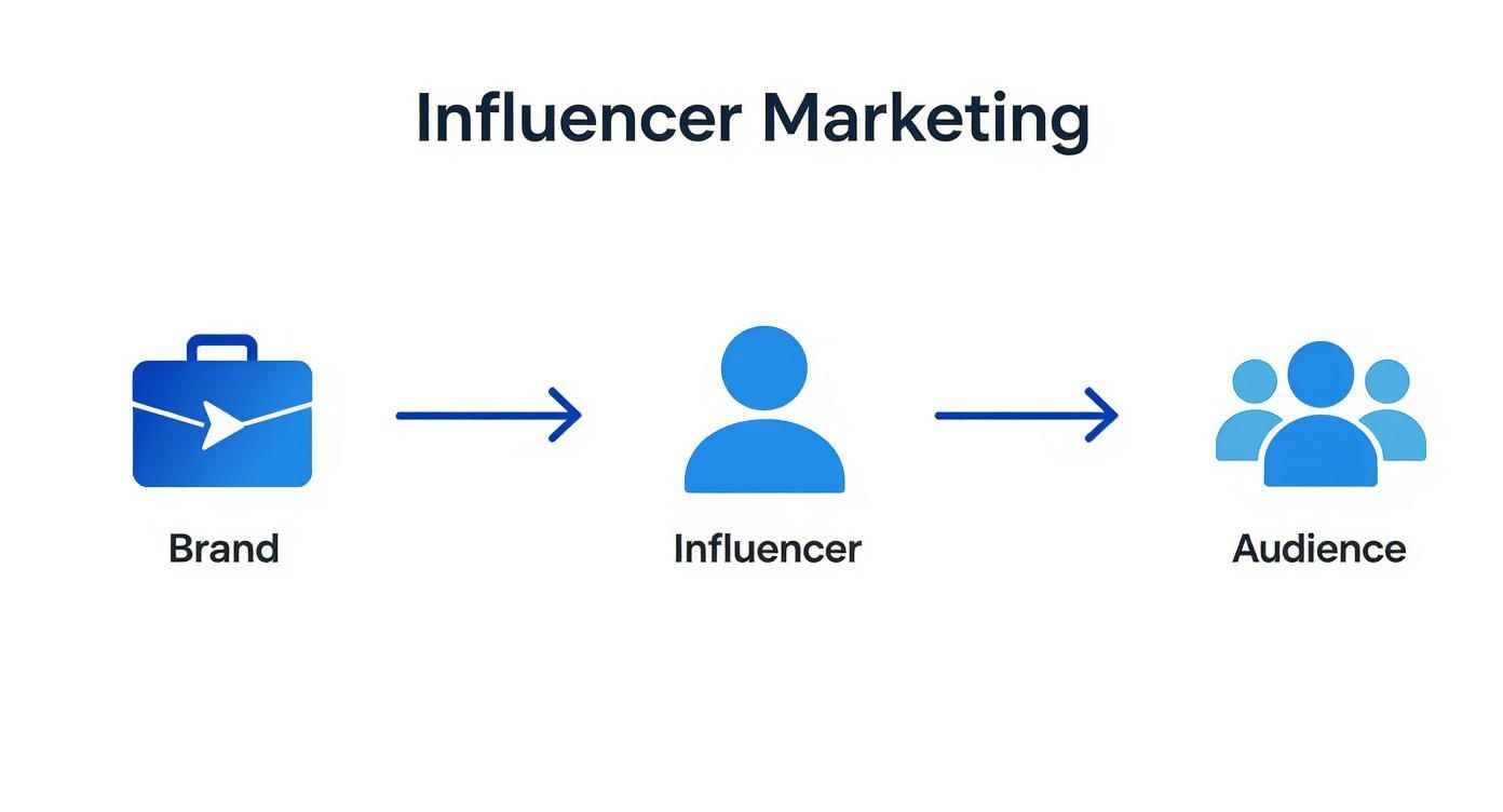 The image breaks it down: the brand's message is filtered through the influencer's credibility before it ever reaches the final consumer. Simple, but powerful.