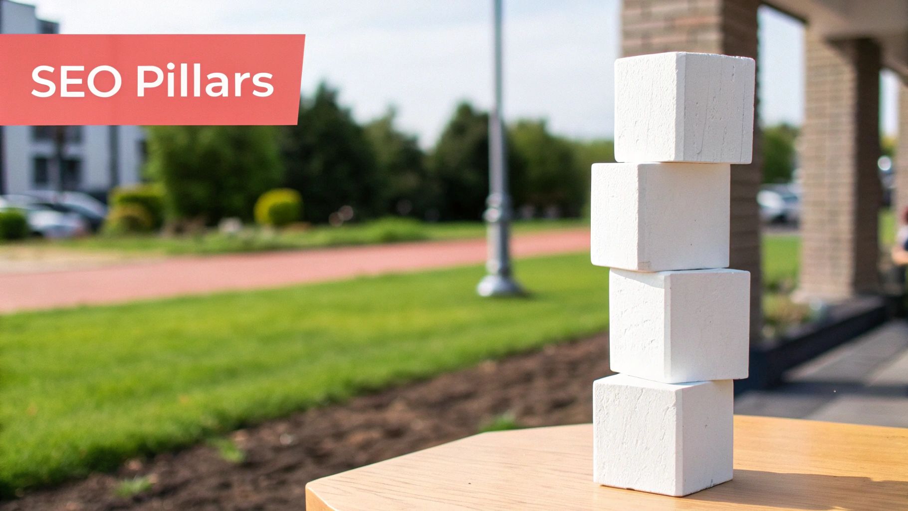 SEO isn't a one and done task you can just tick off a list. The best way to think about it is like building a house. For the whole structure to be sound, you need several strong pillars holding it up. If you neglect one, the whole thing starts to feel wobbly.